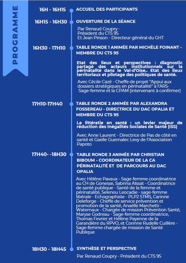 📅 Vous pourrez : échanges autour de la périnatalité, sur l'état des lieux départemental, il y aura un focus sur la littératie en santé et un point sur la collaboration entre les acteurs.